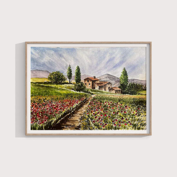 نقاشی آبرنگ دشت گل موضوع بسیار دلنشین و جذابی برای اتاق خواب و کار است. رنگ های این نقاشی به اتاق شما روح تازگی و حسی ملایم میبخشد و حس خوشایندی در محیط شما ایجاد خواهد کرد.
